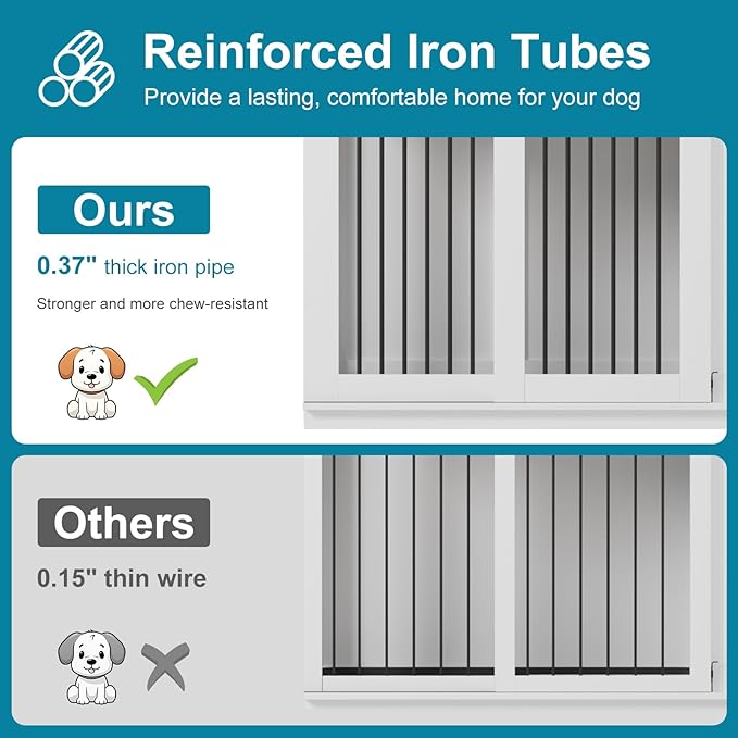 - 【Sturdy and Chew-Resistant】This dog crate furniture for 2 dogs is made of premium particle board and iron pipe, which is stronger and more chewy, it will accompany your dog throughout the growing stages