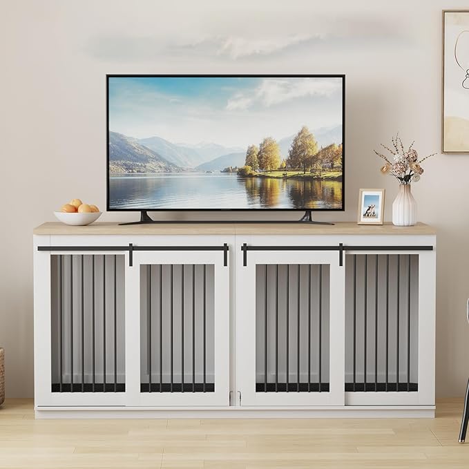 - 【Multifunctional Dog Crate】 This large dog kennel furniture can provide a comfortable haven for your dog, the dog kennel can be used as a TV stand and side table to save space, you can easily place decorations or items on the top