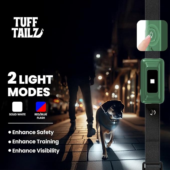 - BUILT-IN FLASHLIGHT FOR NIGHT SAFETY: The electric training collar for dogs comes with a bright built-in flashlight with multiple light modes on the receiver, making it easy to spot your dog during night walks or outdoor adventures. Whether your dog loves to roam or hide in the dark, this feature helps you keep track of them from a distance, ensuring their safety.