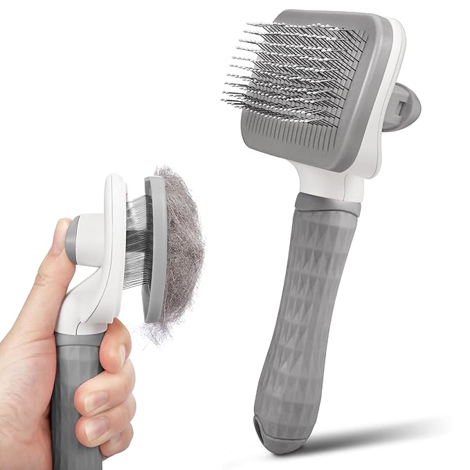 Self Cleaning Slicker Brush for Pets, Removes Loose Undercoat & Portable Comb for Long Short Haired Dogs & Cats (Gray)
