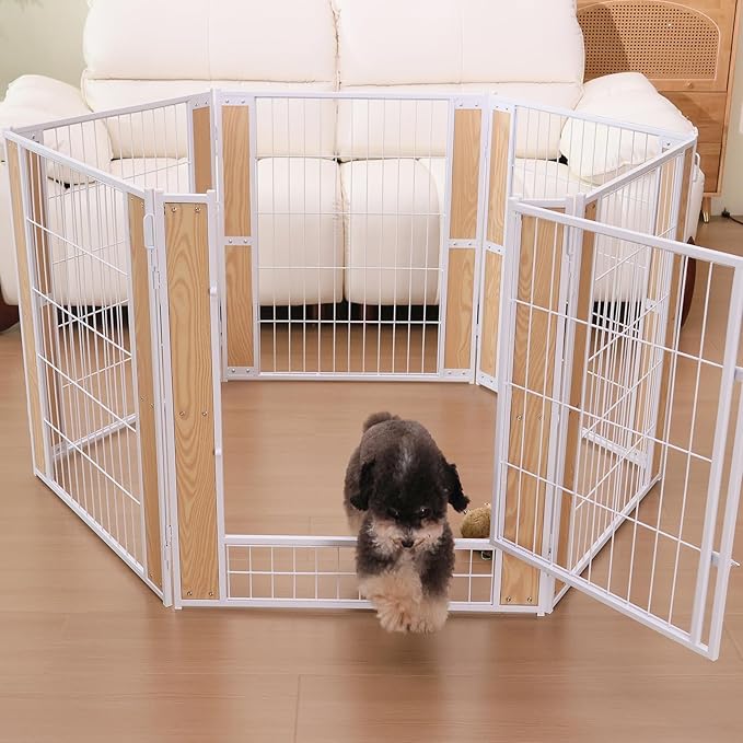 - 【Robust and Aesthetic Structure】Constructed from sturdy metal components, our puppy playpen is built to last, resisting damage from small pets while enhancing its longevity. The design is not only strong but also aesthetically pleasing, blending seamlessly with your home decor. Rounded edges safeguard your pets against scratches, ensuring their safety within the enclosure.