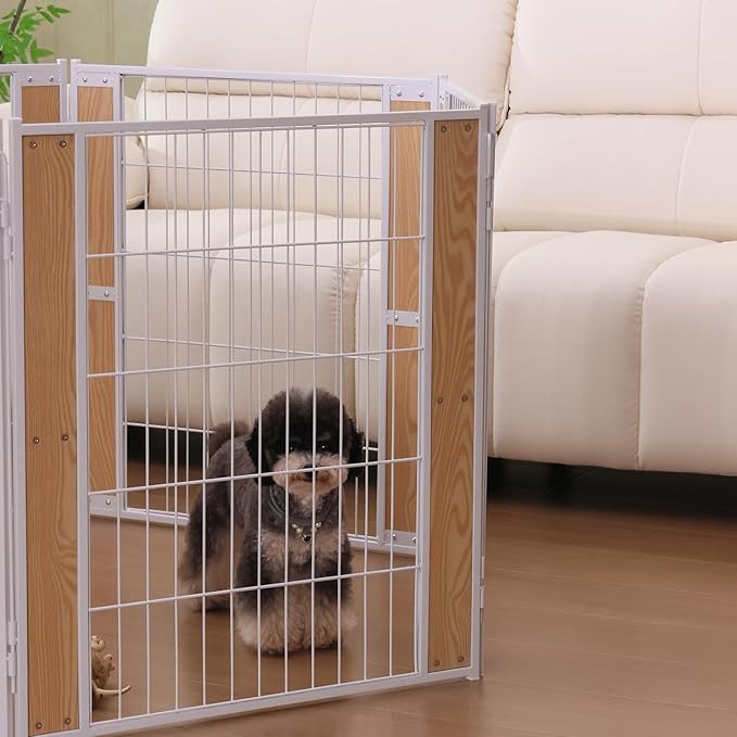 - 【Robust and Aesthetic Structure】Constructed from sturdy metal components, our puppy playpen is built to last, resisting damage from small pets while enhancing its longevity. The design is not only strong but also aesthetically pleasing, blending seamlessly with your home decor. Rounded edges safeguard your pets against scratches, ensuring their safety within the enclosure.