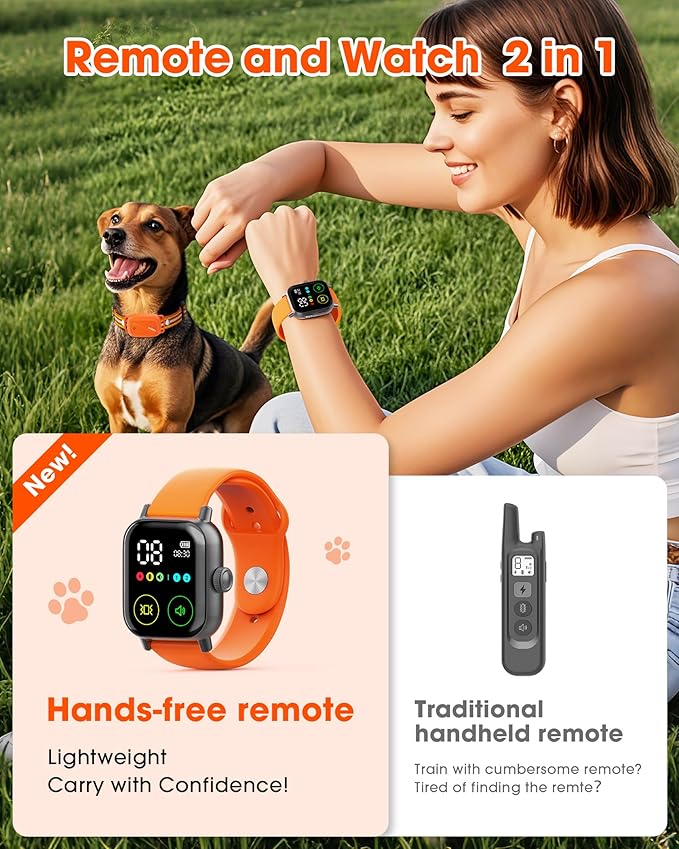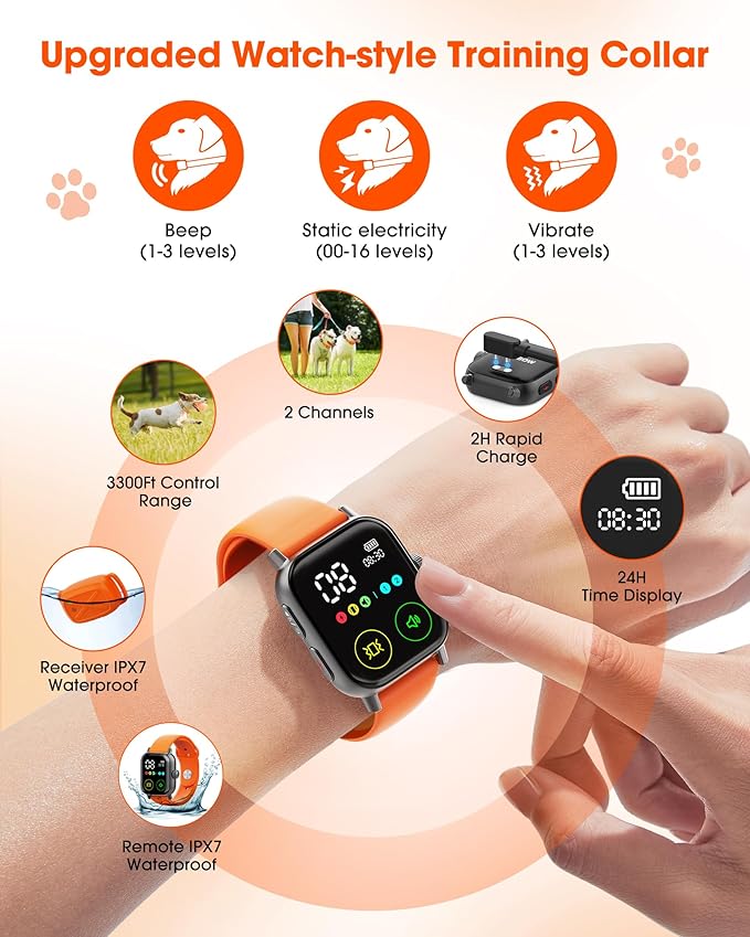 Jugbow Dog Training Collar with Watch-Style Remote, 3300FT Waterproof IPX7 E-Collar, IPX7 Hand-Free Remote 24H Time Display, Electric Vibration Beep Collars for 10-120 lb Small Medium Large Dogs