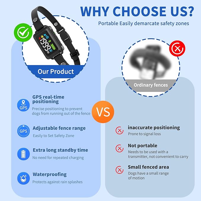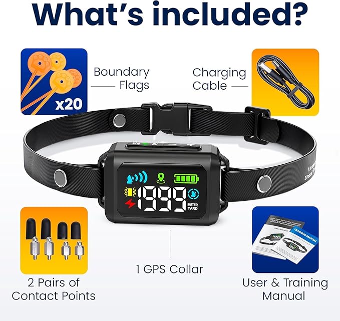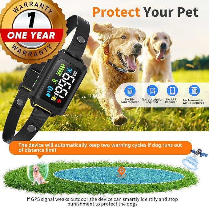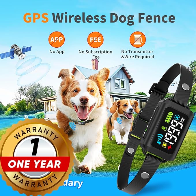 GPS Dog Fence Collar with Wireless Tracker – No Shock, Waterproof & Rechargeable – Smart Pet Containment for Small, Medium & Large Dogs – Adjustable, Portable, Safe Training System