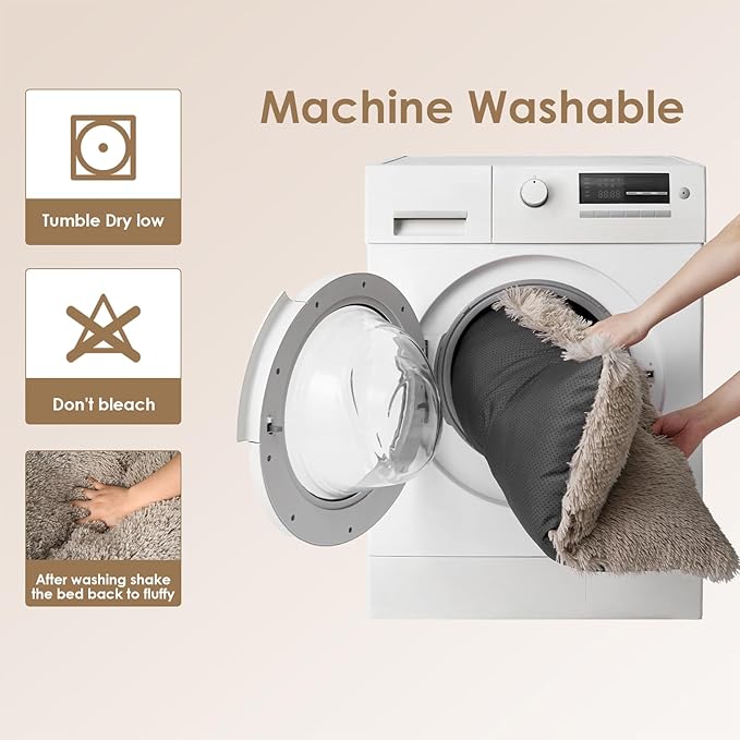 - MACHINE WASH and CARE INSTRUCTION - The washable dog bed can be put directly into the washing machine as a whole. This plush dog bed is vacuum-compressed, please remove the compression bag, shake it completely, and leave it for about 24 hours to expand. After washing and before use, please shake the bed back fluffy.