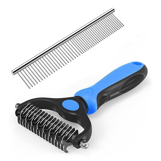 YINGFAN Pet Grooming Combo, Double-Sided Dematting Deshedding Undercoat Rake for Dogs and Cats, Dog Combs for Grooming Matting (Blue)