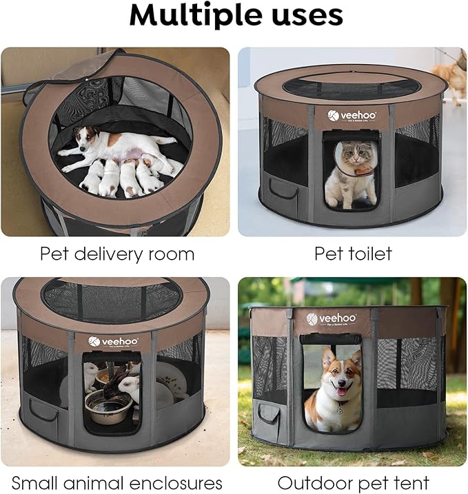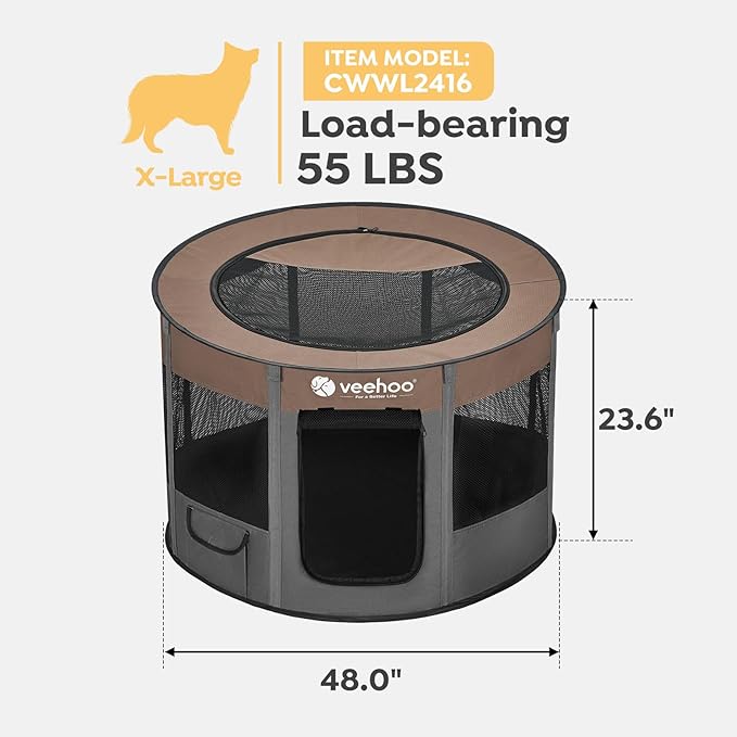 Veehoo Portable Puppy Playpen, Pet Kitten Playpen for Indoor Portable PopUp Dog Kennel Foldable Playpen Outdoor Tent Crate with Carrying Case for Kitten Puppy Small Animal,Coffee 48.0"Lx48.0"Wx23.6"Th