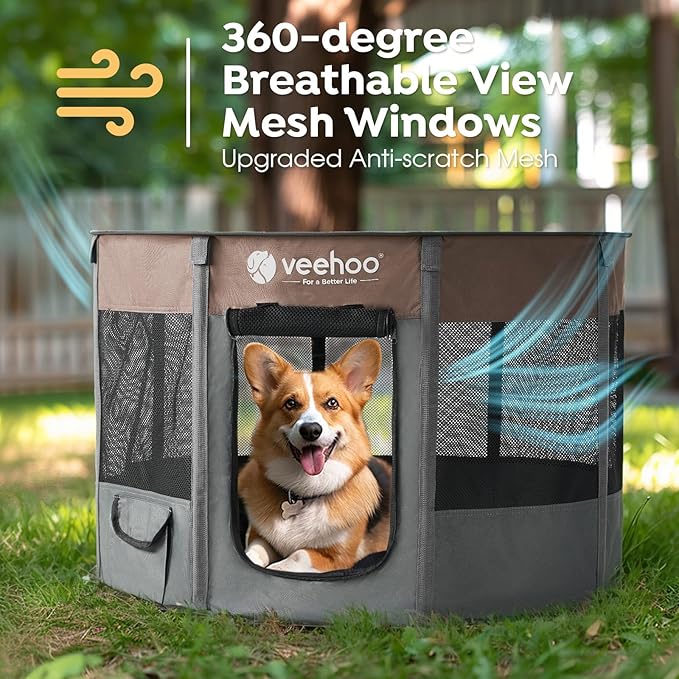 - Excellent Permeability : With 360-degree breathable view mesh windows and half mesh top, this small playpen for dogs indoor delivers great airflow and panoramic view of its surroundings, reducing their fear of confined spaces.