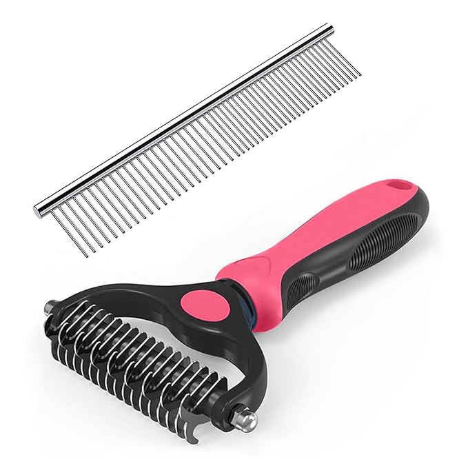 YINGFAN Pet Grooming Combo, Double-Sided Dematting Deshedding Undercoat Rake for Dogs and Cats, Dematting Comb for Dogs (Pink)