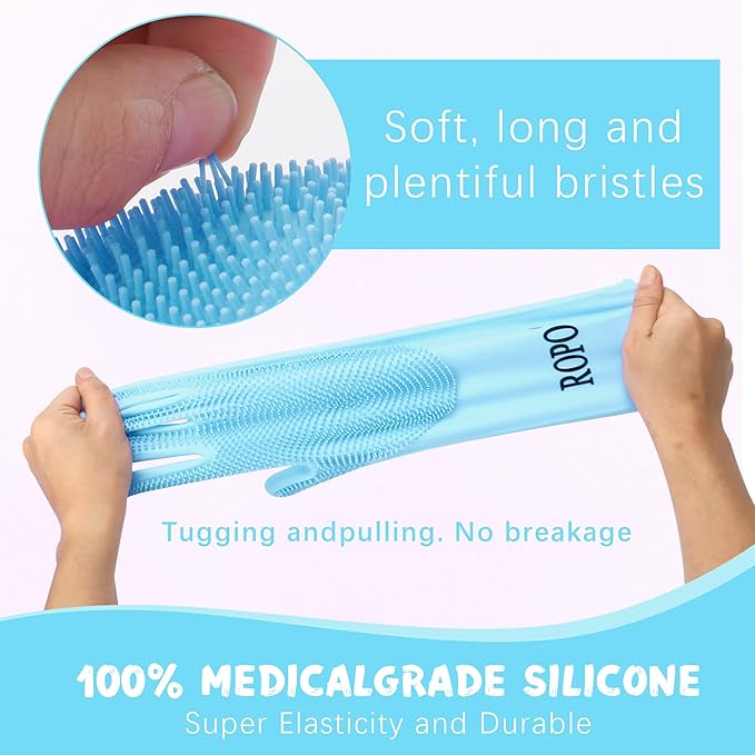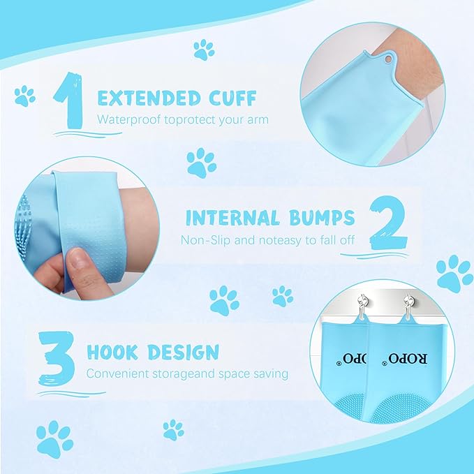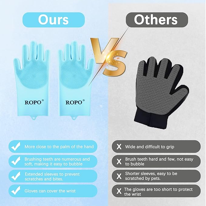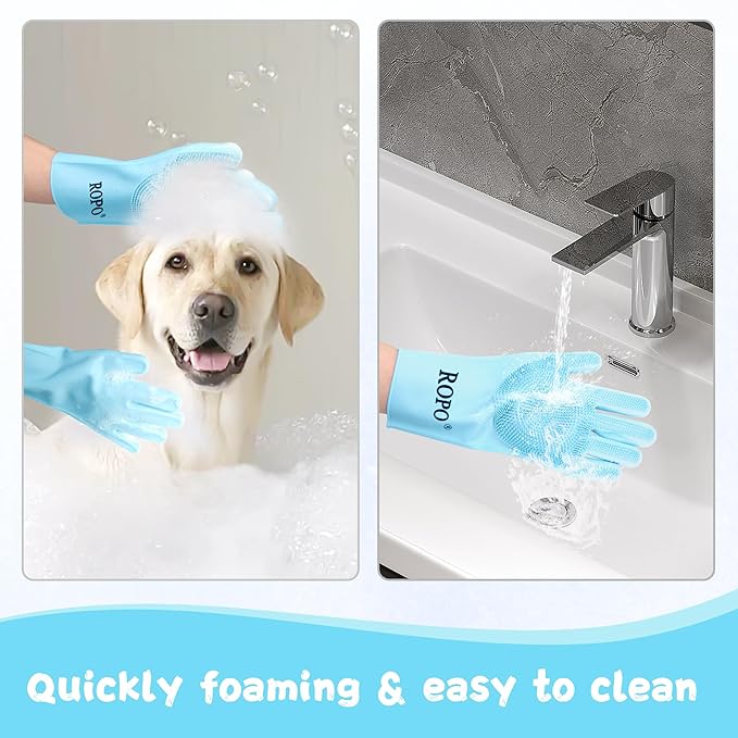 - MULTI-PURPOSE: You can take ROPO this pet bathing gloves with you when your beloved pet is taking a bath, removing loose hair while bathing, letting your pet enjoy the bath time, and can also be used to clean dishes, furniture, cars, widely used.