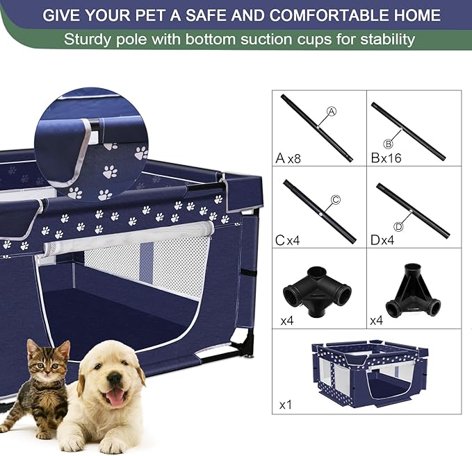 - 【Pet Friendly】: Instead of traditional iron dog fences, we utilize reinforced steel pipes along with high-strength fabric and connectors to construct our enclosures. In comparison to iron cages, these alternatives are less likely to cause damage to your dog's teeth and paws. Additionally, pets May accidentally eat iron filings from metal structures. By employing a safety fabric fence, we effectively prevent the risk of pets consuming harmful iron particles