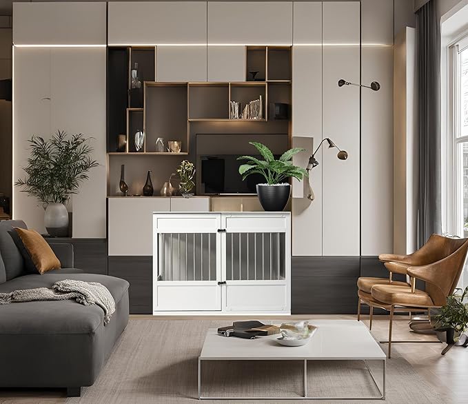 • [Durability & Style] Crafted from ECOFLEX, a robust wood-plastic composite, this large dog crate doubles as an elegant end table; blending seamlessly with your living room, bedroom, or family room decor