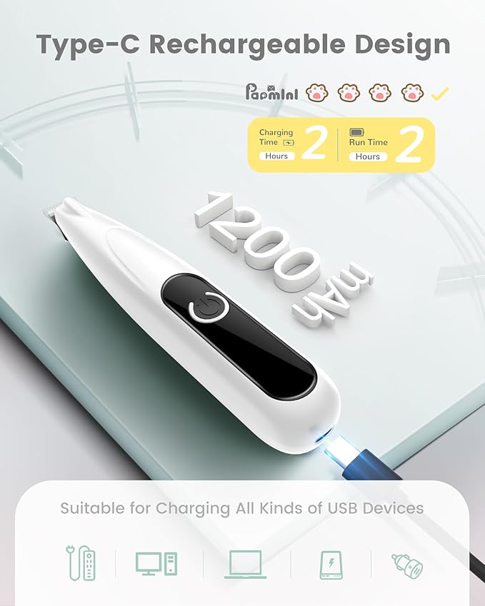 - 35 dB Ultra-low Noise: PAPMINI cat shaver adapts ultra-low noise technology, the working noise is less than 35 decibels.Protect your pet from stress and fear during the grooming process