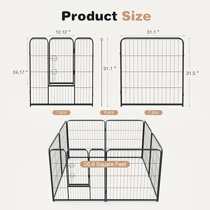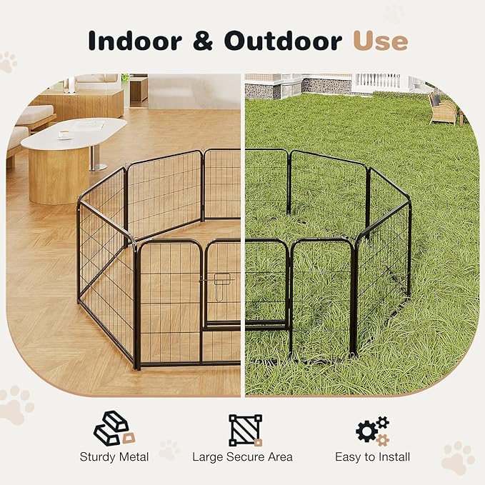 Heavy-Duty Iron Dog Playpen – 8 Panel 32” Durable, Rust-Resistant Pet Fence for Indoor & Outdoor Use, Secure & Spacious Pet Play Area for Dogs, Puppies & Small Animals