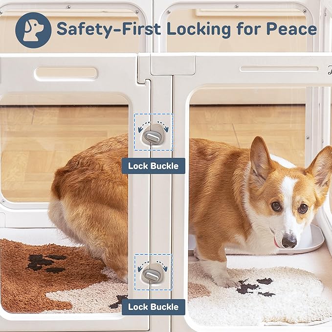 - đ¶ăModern and Transparent DesignăDiscover the indoor dog playpen, merging modern design with pet comfort. Our clear dog playpen features transparent panels, offering a stress-free, open space for pets. Easily monitor your pets' happiness and safety with this innovative, transparent plastic small dog playpen for dogs. Enjoy the sleek design that keeps your pets secure and visible in your home.