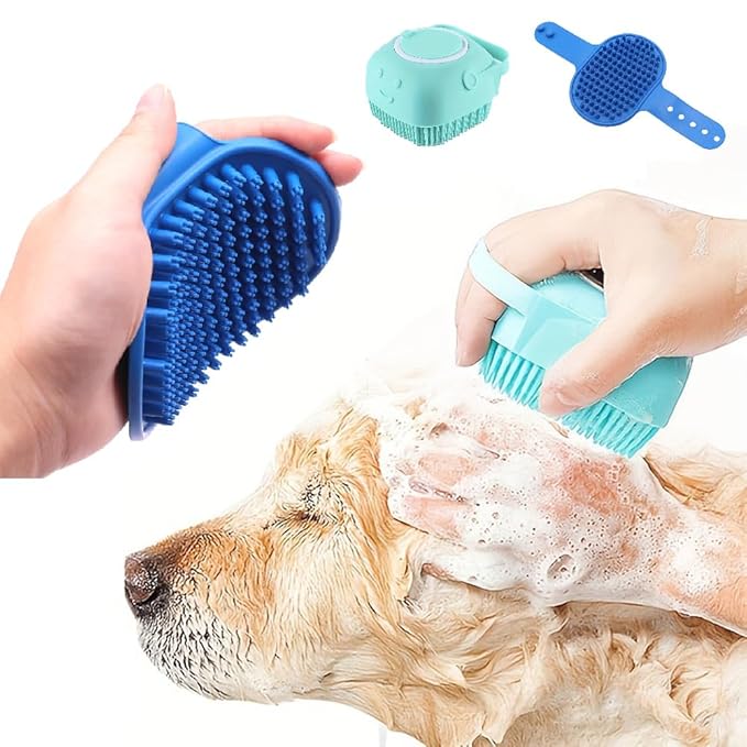 Silicone Pet Bath Brush Set, 2 Pieces, Massage Brush for Dogs and Cats