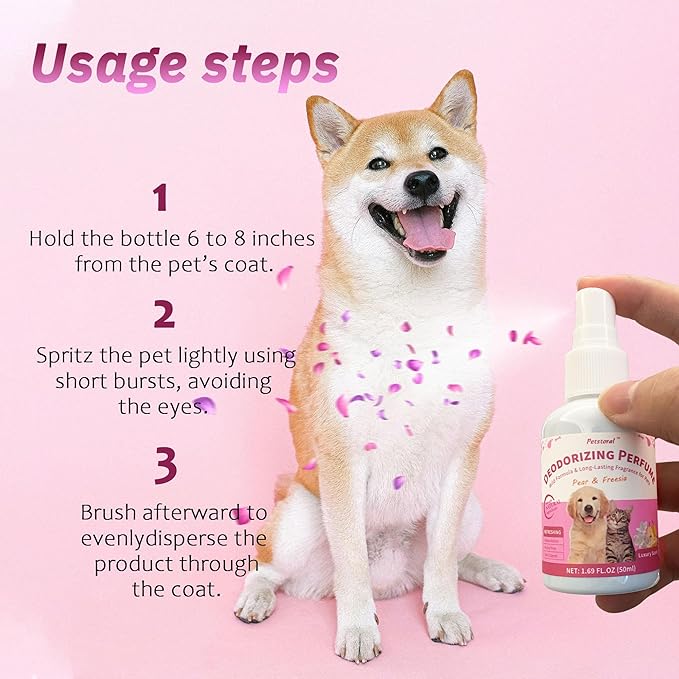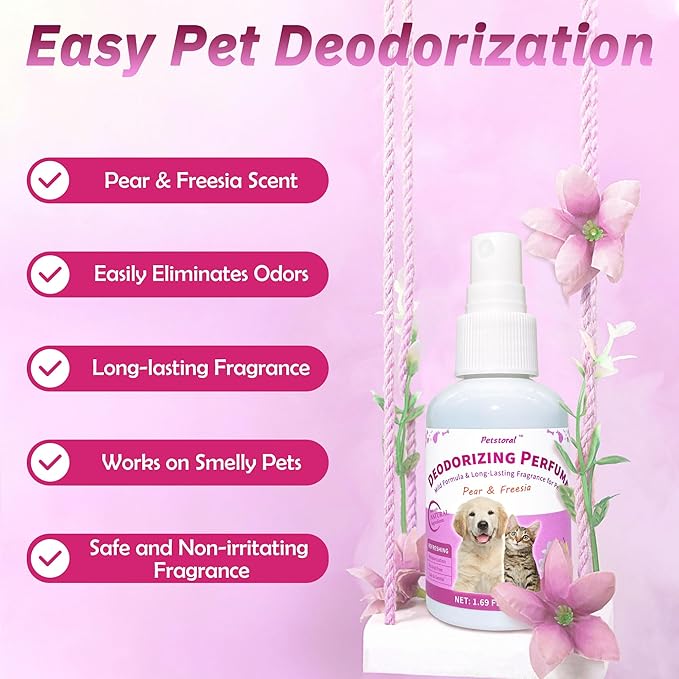 Deodorizing Perfume Spray for Pets, luxury Scent, Long-Lasting Fragrance (1.69 Fl Oz, Pear & Freesia)