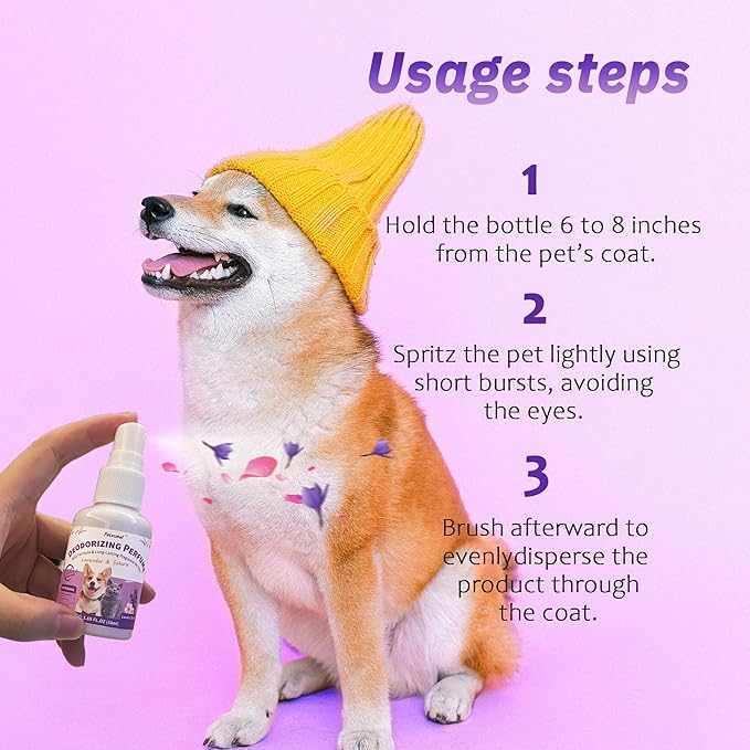 Deodorizing Perfume Spray for Pets, luxury Scent, Long-Lasting Fragrance (1.69 Fl Oz, Lavender & Sakaru)