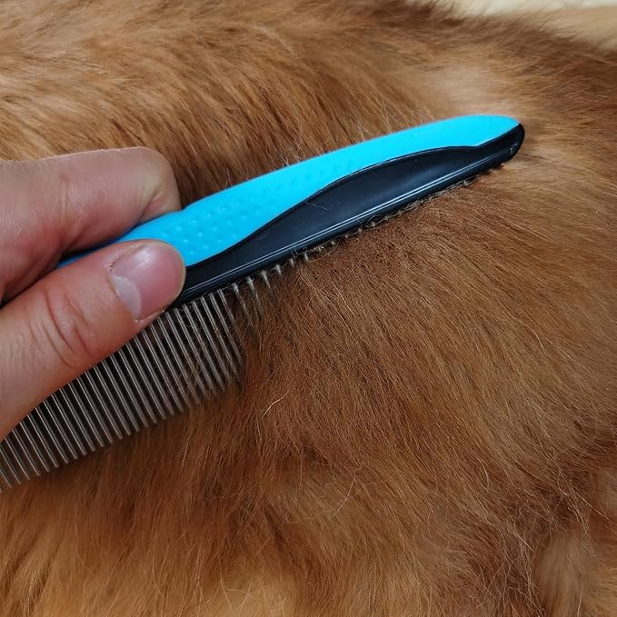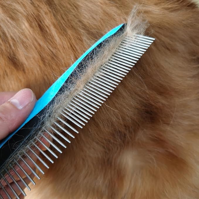 - Dense teeth + wide teeth design-Dense teeth comb the fur smooth, wide teeth removes tangles, mats, knots, loose hair, etc.