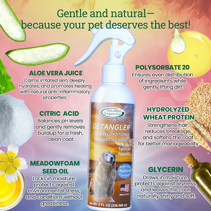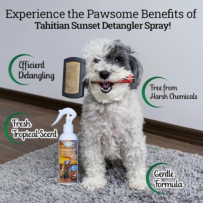 Detangler Spray - Tahitian Sunset Scent - Deodorizing Spray for Dogs and Horses, Leave-In Conditioner, Gently Releases Tangles, Softens Coats, Freshens Scent | Made in the USA | 8oz
