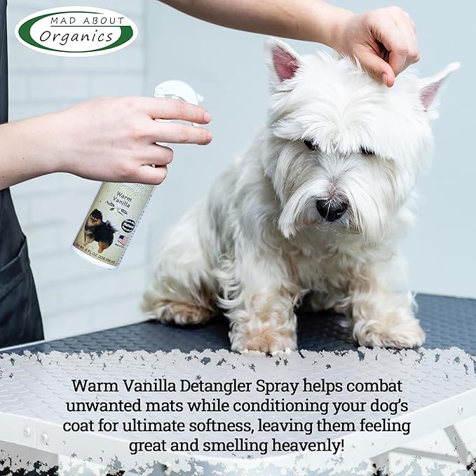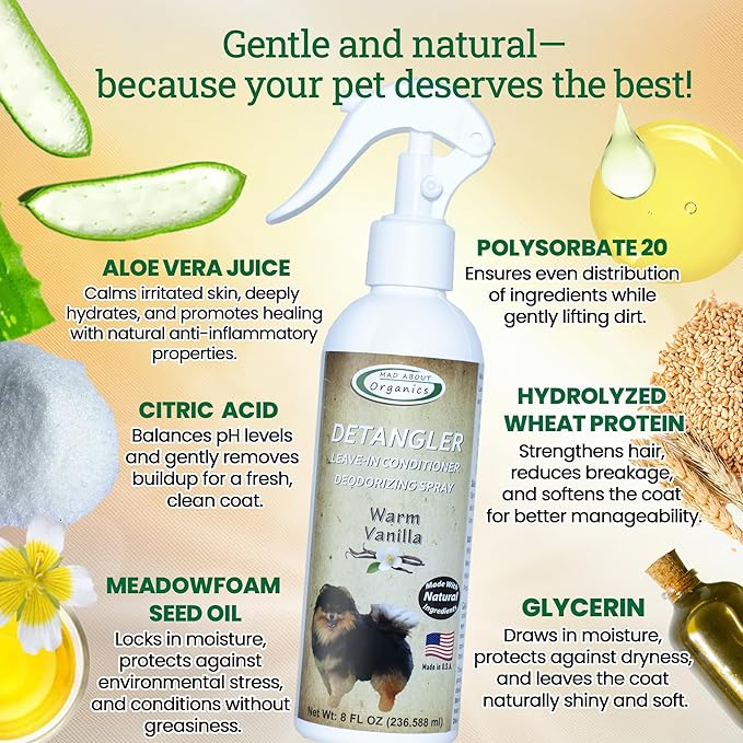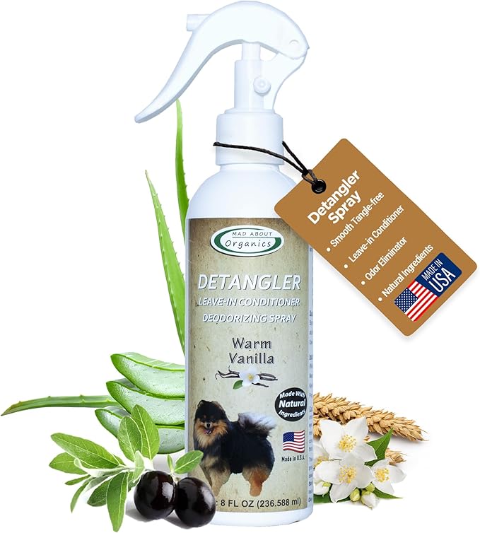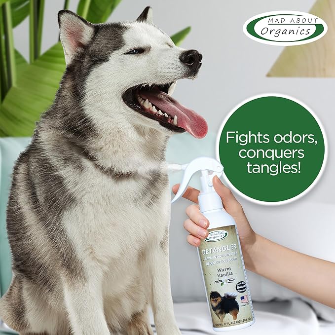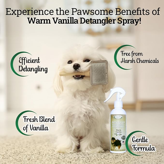 Detangler Spray - Warm Vanilla Scent - Deodorizing Spray for Dogs and Horses, Leave-in Conditioner, Gently Releases Tangles, Softens Coats, Freshens Scent | Made in The USA | 8 oz