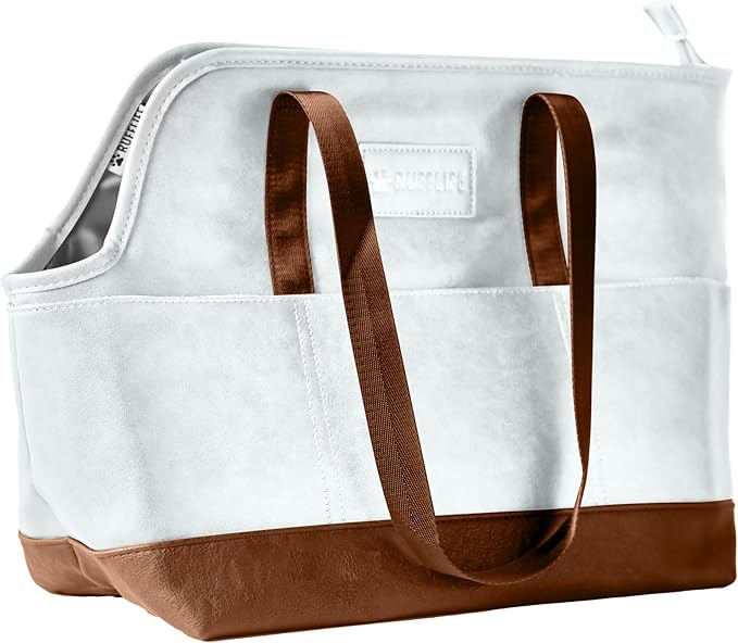 Luxury Dog Purse Carrier for Small Dogs, Faux Leather Pet Carrier Purse, Secure Harness Clip, Dog Tote Bag Carrier for Small Dogs and Puppies - White