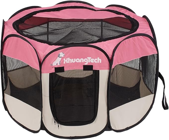Foldable Pet Dog Playpen, Pop Up Portable Cat Playpen, Indoor/Outdoor for Kitten Puppy Play Pen, Cats Crate Cage Tent with Carrying Bag, 600D Oxford (Pink + Beige, Small (26"x26"x18"), 8)