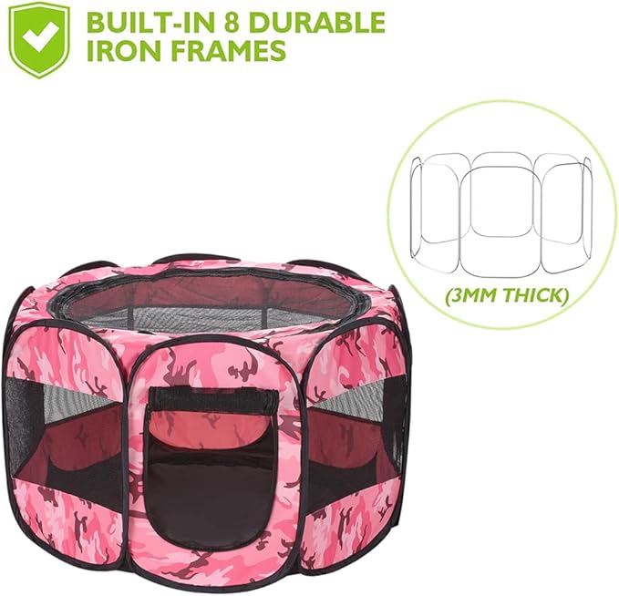 Foldable Pet Dog Playpen, Pop Up Portable Cat Playpen, Indoor/Outdoor for Kitten Puppy Play Pen, Cats Crate Tent with Carrying Bag, 600D Oxford (Camo Pink, Medium (31.5"x31.5"x23"), 8)