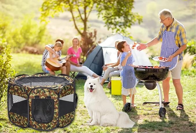 - Giveaway & Tip: The portable playpen for dogs comes with a carry bag for easy carrying and storage, perfect for indoor, lawn, beach, park, travelling, camping and so on! If you have any questions, please feel free to contact us, we will try our best to solve it for you. (Note: Not suitable for naughty pets with sharp teeth or destructive chewing behaviour.)