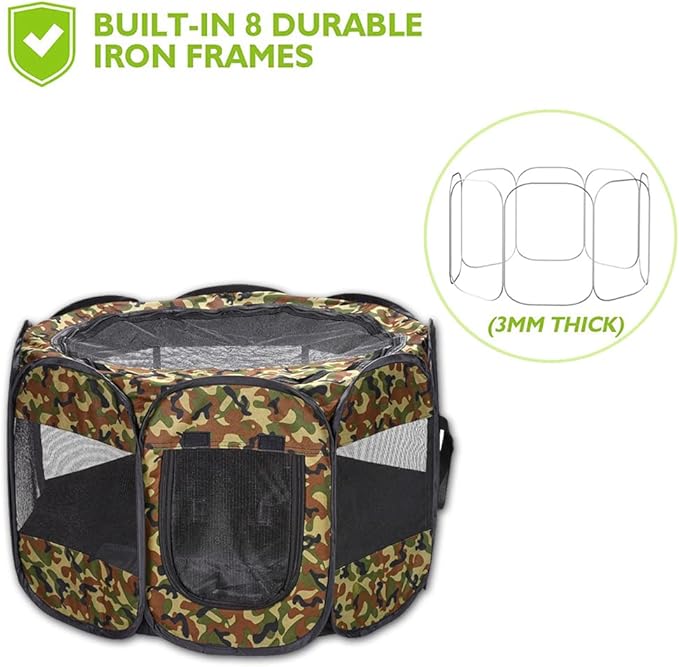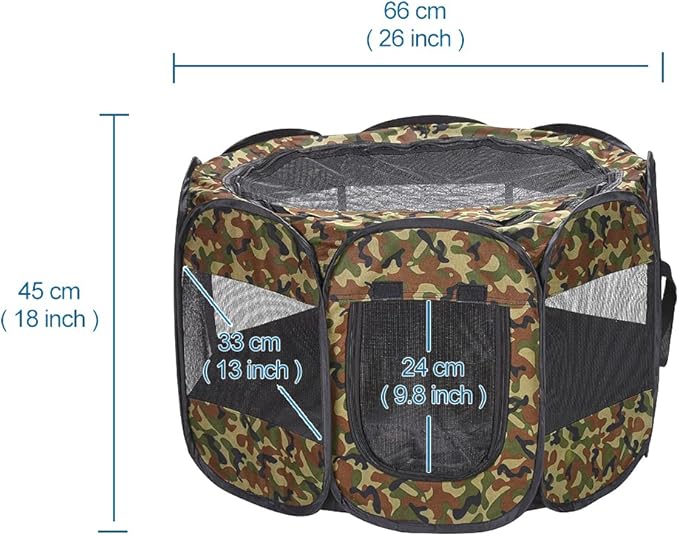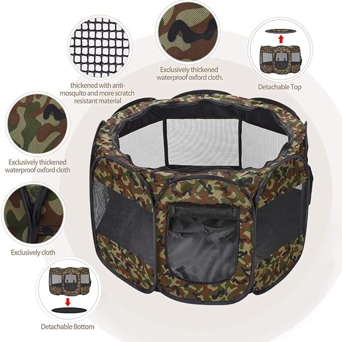 Foldable Pet Dog Playpen, Pop Up Portable Cat Playpen, Indoor/Outdoor for Kitten Puppy Play Pen, Cats Crate Cage Tent with Carrying Bag, 600D Oxford (Camo Green, Small (26"x26"x18"), 8)