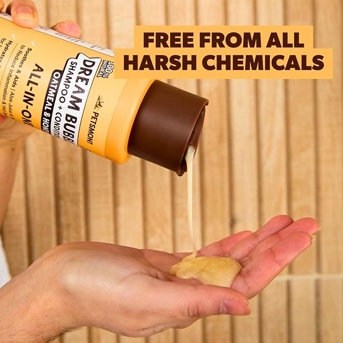 Petsmont Dream Bubbles Organic Shampoo + Conditioner for Dogs and Cats - Oatmeal Shampoo for Sensitive Skin, Anti Itch Conditioner 2 in 1 Dog Itch Relief - 16oz