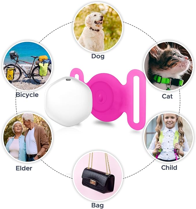 GPS Tracker for Dogs, Mini GPS Cat Tracker, Dog Tracking tag with Holder, No Monthly Fee,Work with Apple Find My(iOS Only),Dog Tracking Device,Anti-Lost,Finder Tag for Vehicles/Pets/Kids/Items (YPink)