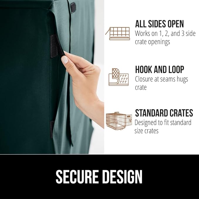 - STAYS IN PLACE: hook and loop fasteners at seams close crate cover; additional hook at loop fastener at the bottom corners help secure cover to crate; cover sizing aligns with standard size crates