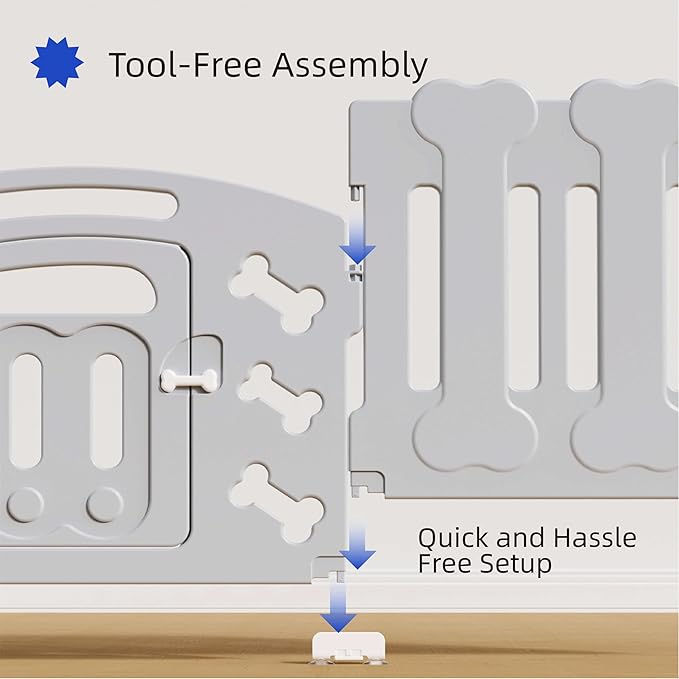 - Rounded Edges for Pet Safety: Featuring rounded edges and a bone-shaped lock, this dog playpen prevents scratches and injuries, ensuring a safe space for your dog to play, rest, or train.