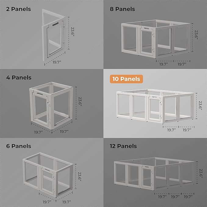 Clear Acrylic Plastic Dog Playpen Indoor,for Puppy Cat Rabbit Ferret Transparent Pet Pen,Easy Assemble Enclosure,Preferable for Small Dogs (10 Panels (White))