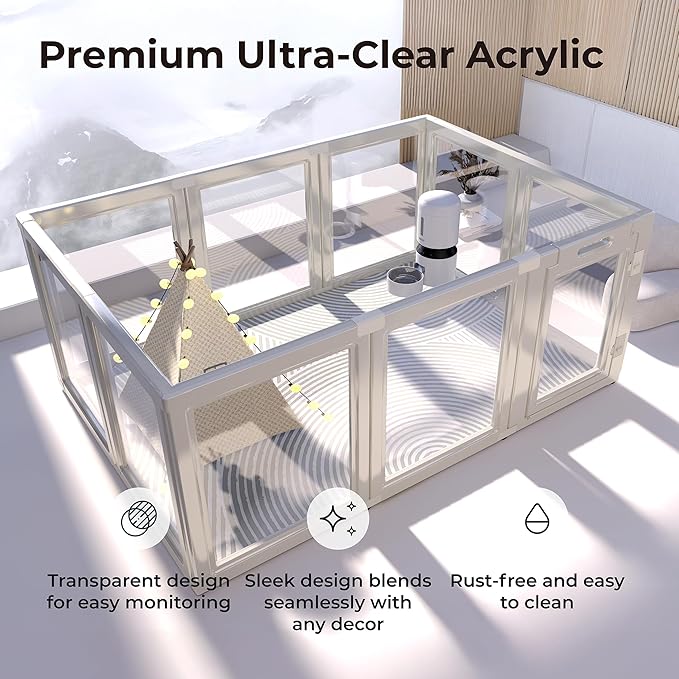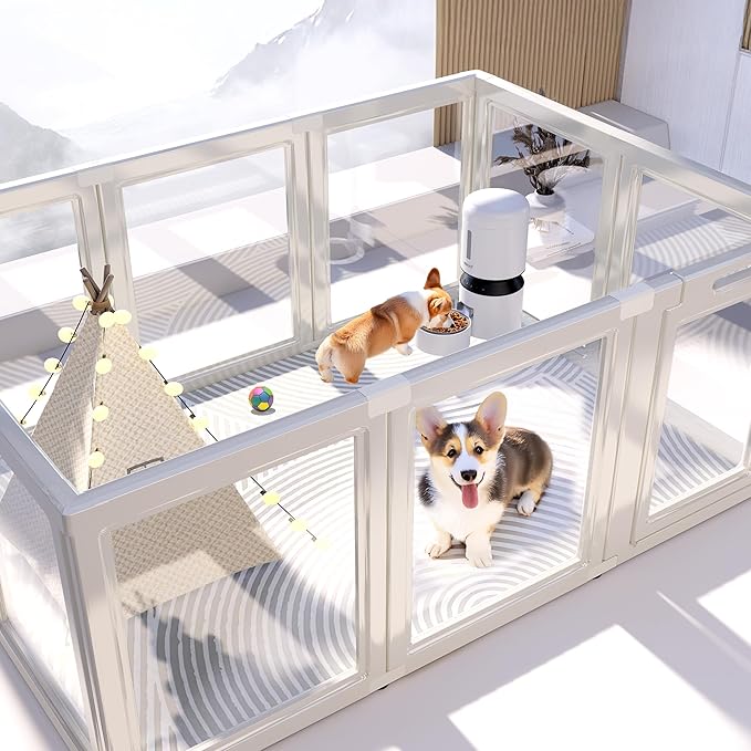 - Versatile Pet Enclosure: Optimus Design Studio's transparent dog playpen is perfect for indoor use, allowing you to keep your furry friend contained while maintaining visibility.