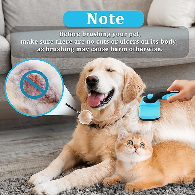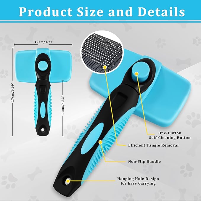 - 【One-Touch Self-Cleaning Design】Say goodbye to the hassle of manual cleaning with self-cleaning brush. Just press the button to start grooming your pet, and press it again to effortlessly release the collected hair. The self-cleaning mechanism ensures that no hair gets tangled, saving you time and effort.