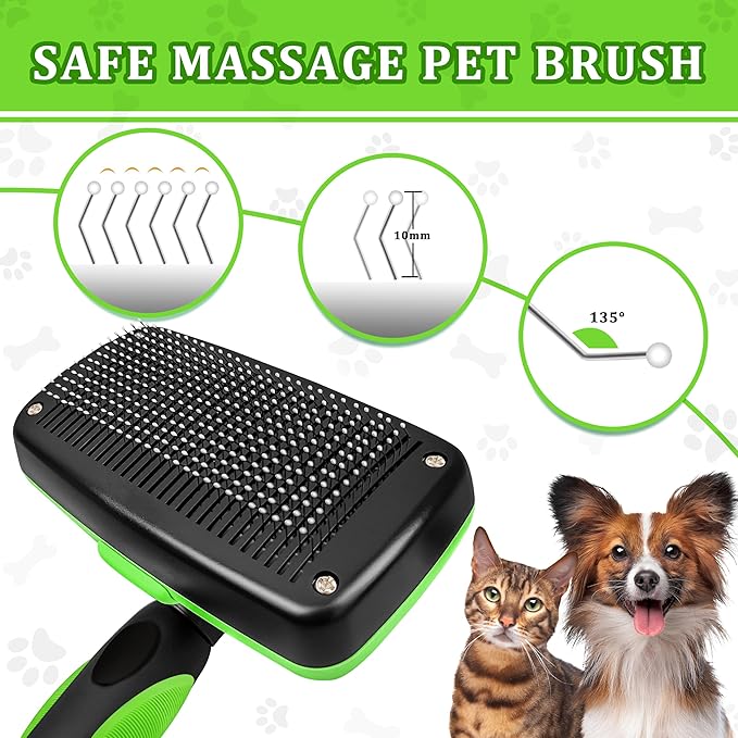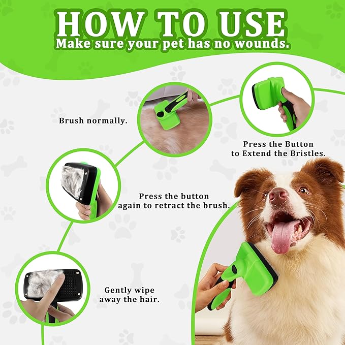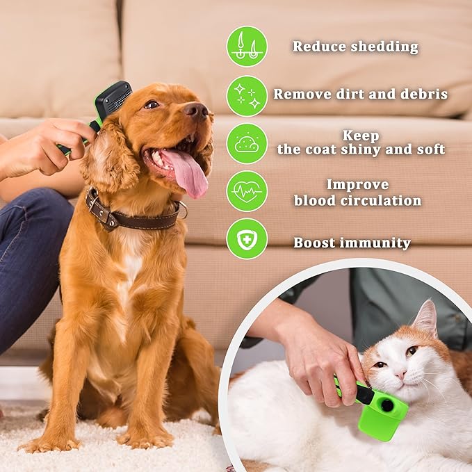 - 【One-Touch Self-Cleaning Design】Say goodbye to the hassle of manual cleaning with self-cleaning brush. Just press the button to start grooming your pet, and press it again to effortlessly release the collected hair. The self-cleaning mechanism ensures that no hair gets tangled, saving you time and effort.