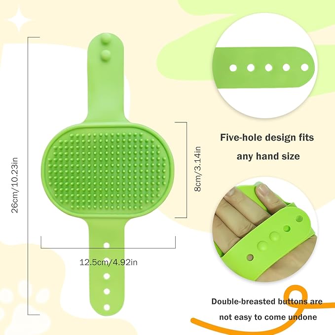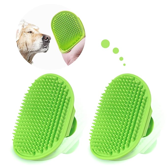 TORMEN 2 pcs Dog Bath Massage Brush, Dog Grooming Brush,Rubber Grooming Brush with Adjustable Handle for Dogs and Cats, Soft, Gentle & Skin-Safe for Long & Short Hair (Green)