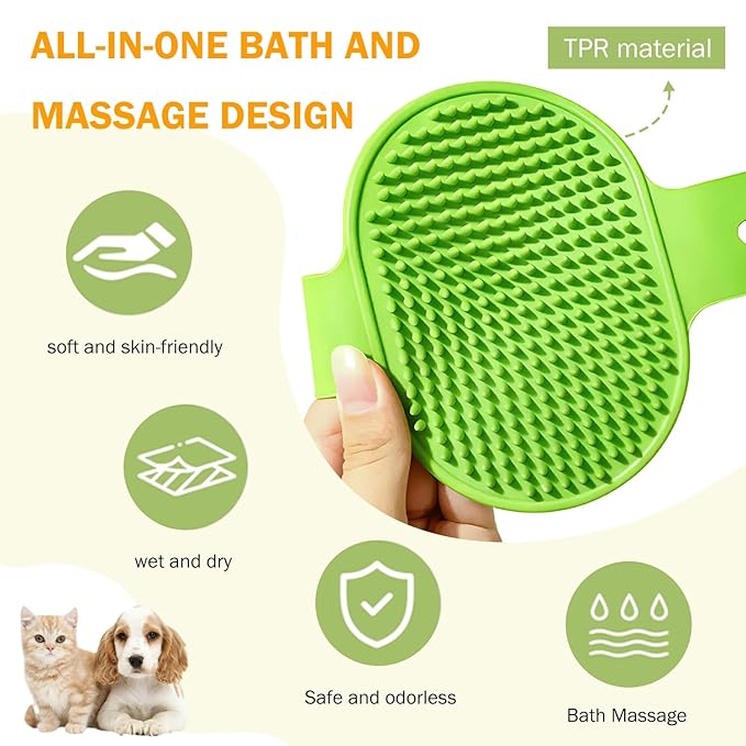 - ENHANCED SHAMPOO FOAMINGAND DEEP CLEANSING – Our bath brush improves shampoo lather, quickly creating a rich foam for deeper cleansing. This ensures thorough removal of dirt and dead skin while enhancing the health and cleanliness of your pet’s coat.