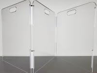 - Our Clear Acrylic Dog Gate requires no installation, making it quick and easy to set up in any space. Simply place it where you need it! This foldable design is perfect for homes with limited space. Available in four adjustable sizes: 3-panel 60"x24", 4-panel 80"x24", 3-panel 72"x31.5", and 4-panel 96"x31.5" to suit your space needs.