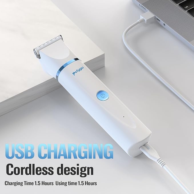 - 【All-In-One Pet Clipper Kit】 - Petygo Pet Trimmer Kit comes with 2 interchangeable trimmer heads and 1 nail grinder head, a USB charging cable, and a small brush.ideal for dogs, cats, and other furry pets. Perfect for full-body grooming and nail trimming.