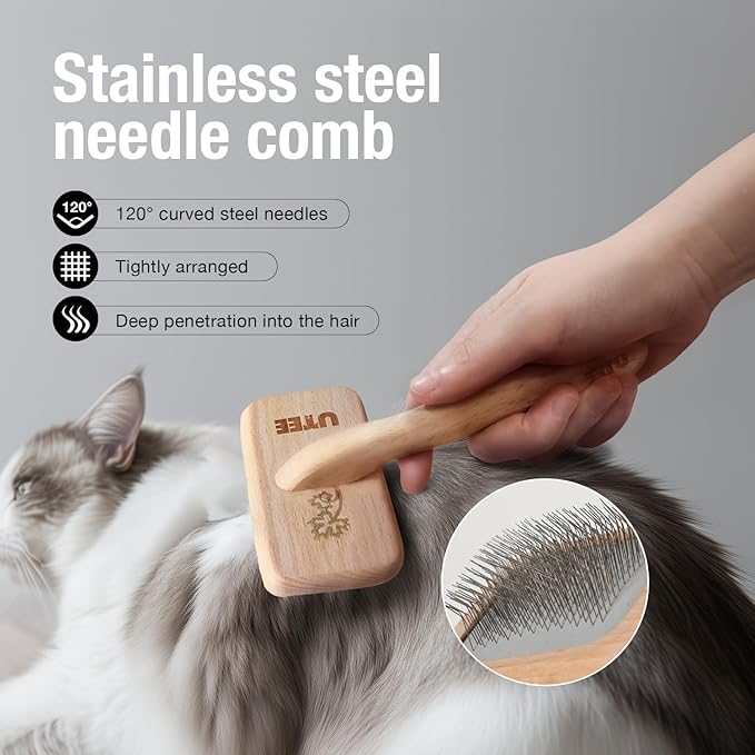 - Unique Design: The UTEE pet grooming brush, with its unique square design and natural beechwood texture, effortlessly blends into your minimalist home decor. Slicker brush is not just a grooming tool but a piece of art that adds a touch of nature and warmth to your pet's life in a minimalist living space.