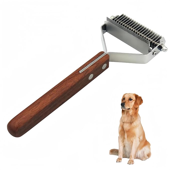 - STURDY DOG GROOVING TOOL: Made of stainless steel and wooden handle, this 2-in-1 pet rake stripping tool is easy to grip and perfect for removing and thinning cat or dog hair