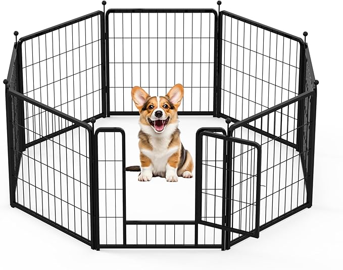 HealSmart Dog Playpen 24 Inch 8 Panels, Heavy Duty Metal Portable Pet Playpen Indoor Outdoor for Camping, Yard, RV, Garden Fence, Privacy Patio, Black
