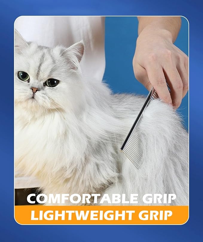Dematting Combs with Rounded Ends - Stainless Steel Teeth for Removing Tangles and Knots - Professional Grooming Tool for Long and Short Haired Dogs, Cats and Other Pets - 7.28IN