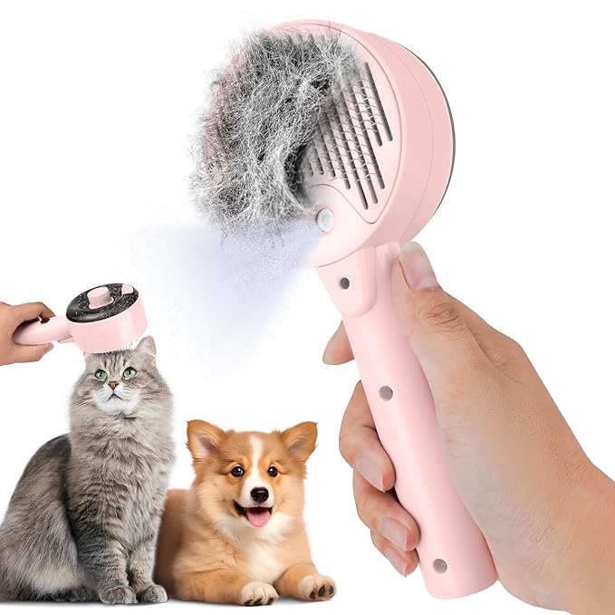 Steam Brush for Cats,3 in 1 Steamy Pet Brush Dog for Shedding for Indoor Cats,Water Brush for Cats Dogs,Spritz Defur Comb for Cats,Pet Grooming Brush Removal Comb with Spray for Cats(Pink)
