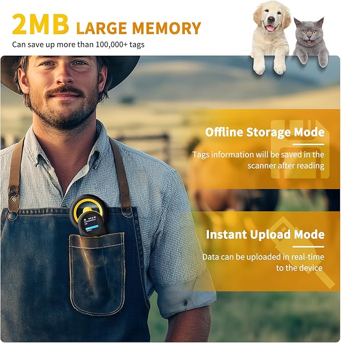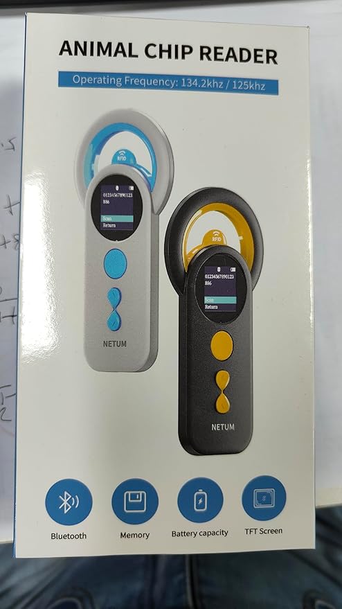- [Long-Lasting Rechargeable Battery] With its built-in 1200mAh rechargeable battery, the NETUM Bluetooth Pet Microchip Scanner offers up to 20 hours of continuous use on a single charge.
