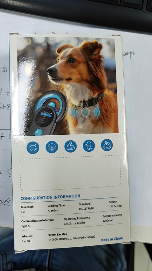 - [1.44" TFT Screen] This wireless pet microchip scanner comes equipped with a 1.44" TFT screen that displays detailed information after scanning your pet, such as battery status, operating mode, connection type, and microchip data.