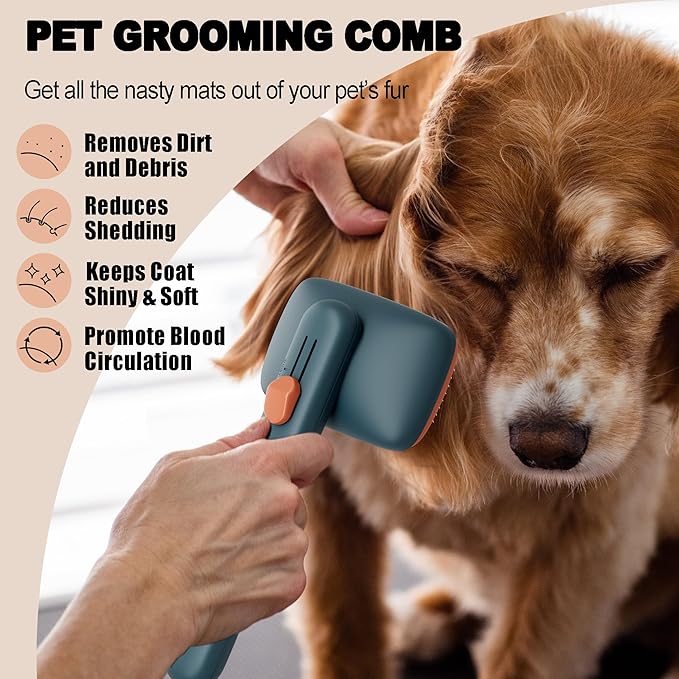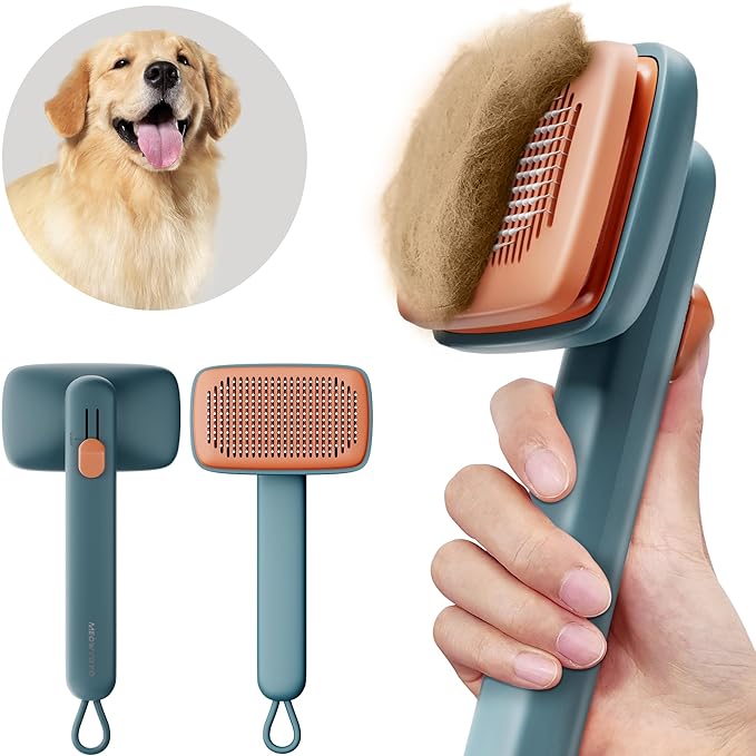 - One-click Cleaning Button: With the one-click cleaning design, our dog brush release the fur more easily. Pushing the button causes the disc to move the brushed hair mat to the ends of the wires, resulting in a mass that is easily peeled off and away from the dog hair brush